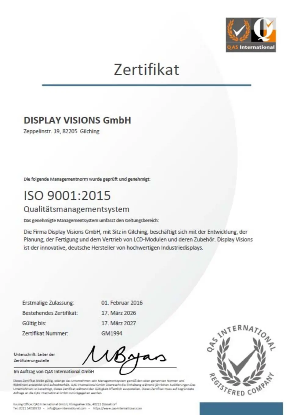 DISPLAY VISIONS / ELECTRONIC ASSEMBLY is committed to the highest quality; this applies to both the products and all work processes.