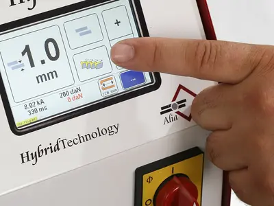 Thanks to an intelligent control system, the HySpot delivers the best spot weld quality with high process reliability. The quality of the spot welds is comparable to that of the manufacturing process. The spot welding machine is available in three different power classes with 38 kVA, 46 kVA and 47 kVA and uses the latest inverter technology with variable frequencies. Water-cooled electrodes ensure maximum service life and the machine is operated and programmed using a graphic touch display. This also ensures that the welding and job data is saved to provide proof of quality.