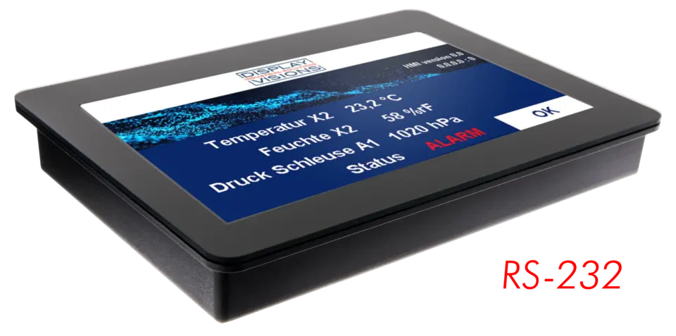 Create customised screen pages using the free WYSIWYG tool "HMI Designer" via drag and drop. Then simply transfer the variable values or receive touch touches via the RS-232. Switch screen pages and integrate a password-protected area.